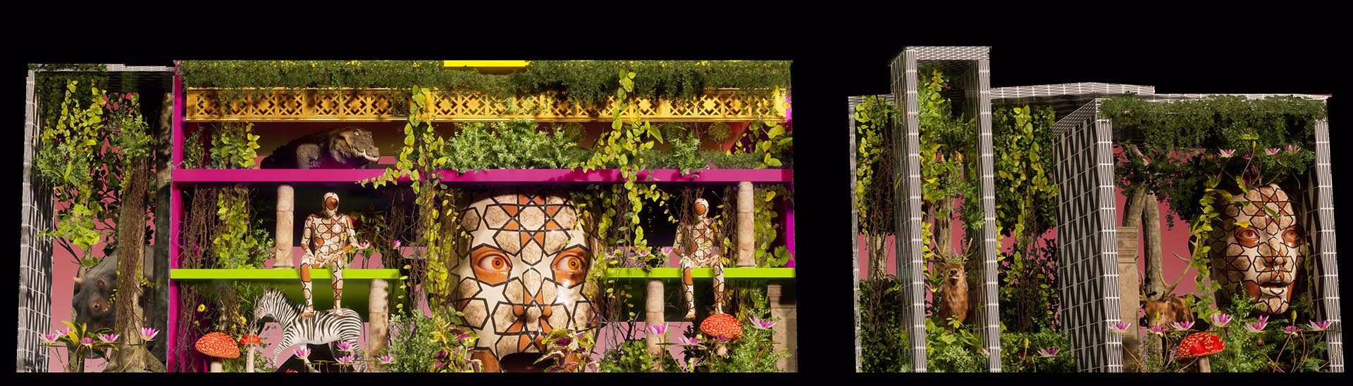 Inspirada en la obra de Hundertwasser, esta pieza transforma la arquitectura a través de la naturaleza, plantas, animales y árboles, creando un entorno donde el ser humano y la naturaleza conviven en armonía.
